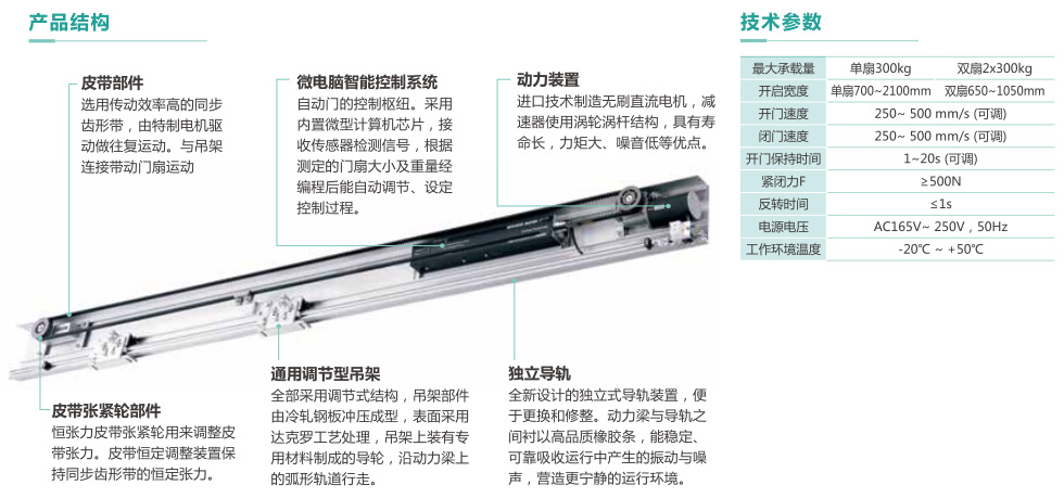 ◆ 負載變化自動適應(yīng)功能,門扇輕重無須調(diào)整。